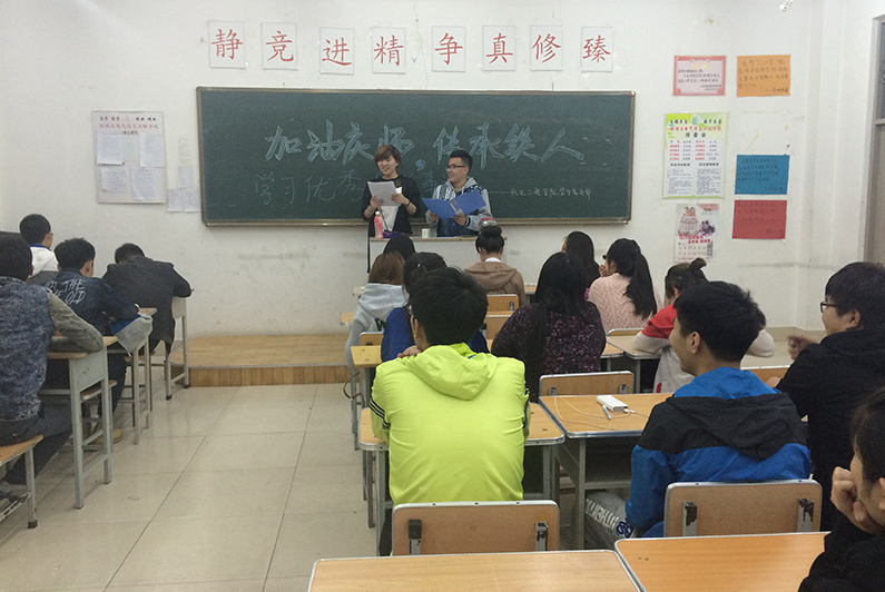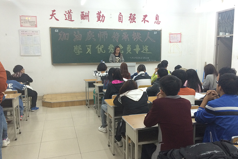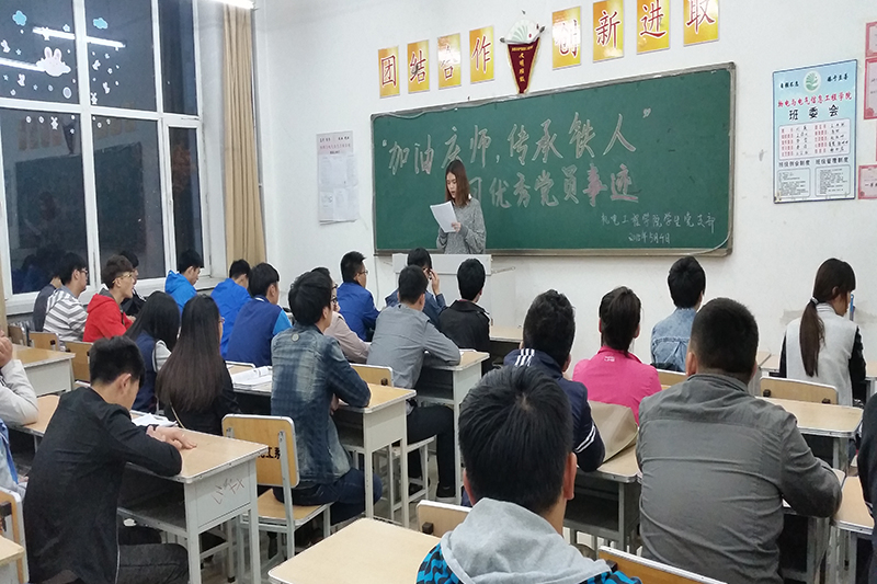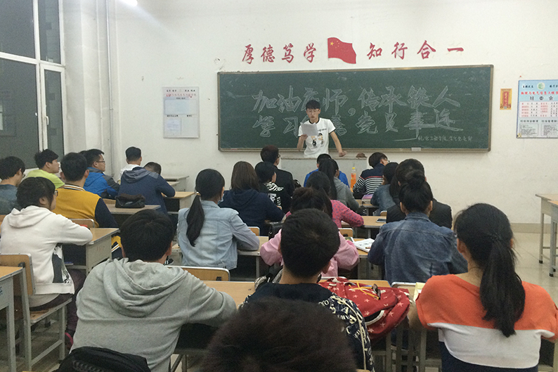 为传承优秀铁人精神,传递庆师正能量,提高新一代入党积极分子素质,加强党的思想理论建设和党员队伍建设,太阳集团tyc539员工党支部于5月4日晚18:00在主楼231开展了“加油庆师,传承铁人,学习党员优秀事迹”班会活动。本次会议由2014级各班班长组织,团支书主持,全体同学参加。