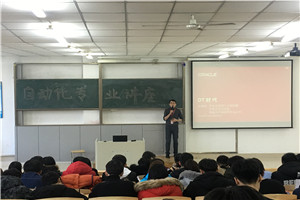 太阳集团tyc539于2017年11月29日15:00在教学主楼2-2举办自动化专业讲座,由甲骨文公司经理李德辉主讲,2015级及2016级自动化专业全体员工参加。