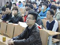 在播放一段影片《钢铁侠》后,宣讲会拉开序幕,刘经理首先为2013级同学简单介绍了甲骨文公司的历史背景。紧接着,张经理为大家详细介绍了甲骨文公司,并对IT行业进行了系统化的分析,表明当今世界是一个大数据时代,并强调了企业产生的数据对社会发展的重要性。与此同时,他围绕云、大数据、客户体验等方面详细讲解了当今社会对人才的需求及培养方向。宣讲会现场,同学们秩序井然,认真记录。
