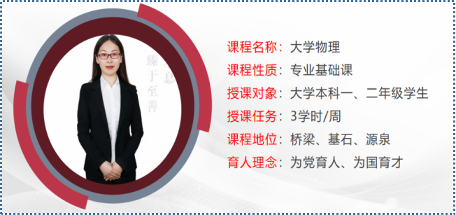 大学物理课程授课方式新颖,教学目的明确,教学思路清晰,教学环节设计合理,平台资源丰富、充分发挥其线上教学的优势,将线上教学方式方法与课程特点有机融合、演绎了桃李春风学正浓的线上教学氛围。
