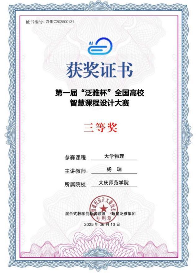 本次大赛聚焦“AI +教学”深度融合,旨在贯彻落实全国教育大会精神,塑造“人工智能+”高等教育新生态,激励教师设计出具有前瞻性、创新性和实用性的智慧课程,推动智慧教育的创新与发展。大赛吸引了全国数百所高校教师团队积极参与。赛事评审严格,大赛评审委员会由高校教育技术专家、教学名师及行业领军者组成,通过“匿名盲审+交叉评分”的严格评审方式遴选出优质成果。大学物理教学团队深耕智慧教学,将AI技术融入《大学物理》课程,优化教学设计,让物理知识传授与数字化教学深度融合,展现出对智慧教育的前沿探索。