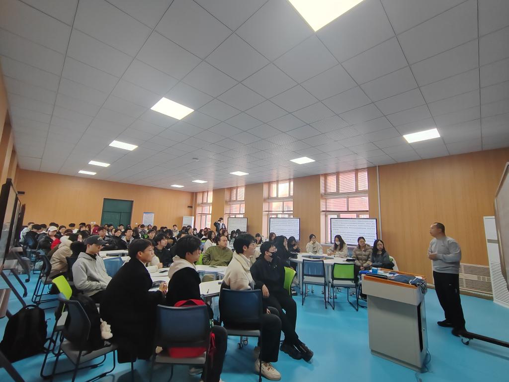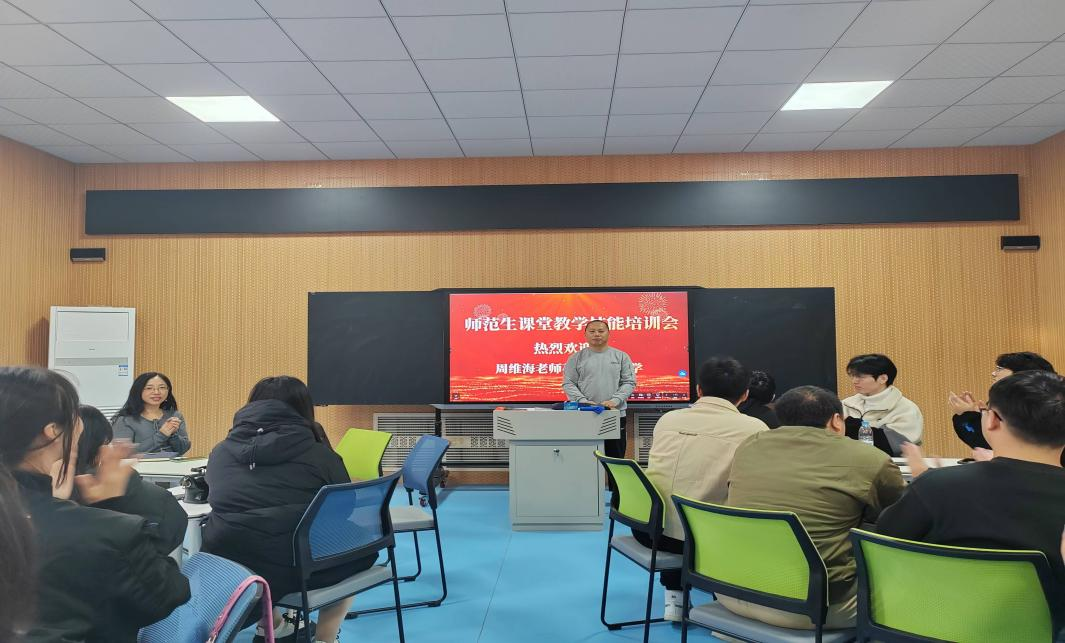 2024年11月15日,太阳集团tyc539物理学专业召开师范生课堂教学技能培训会,会议特邀大庆市物理兼职教研员、高中物理学科专家组成员、大庆市名师工作室负责人、大庆第一中学周维海老师对22级物理学师范生进行课堂教学技能培训,物理学专业全体教师参加会议。