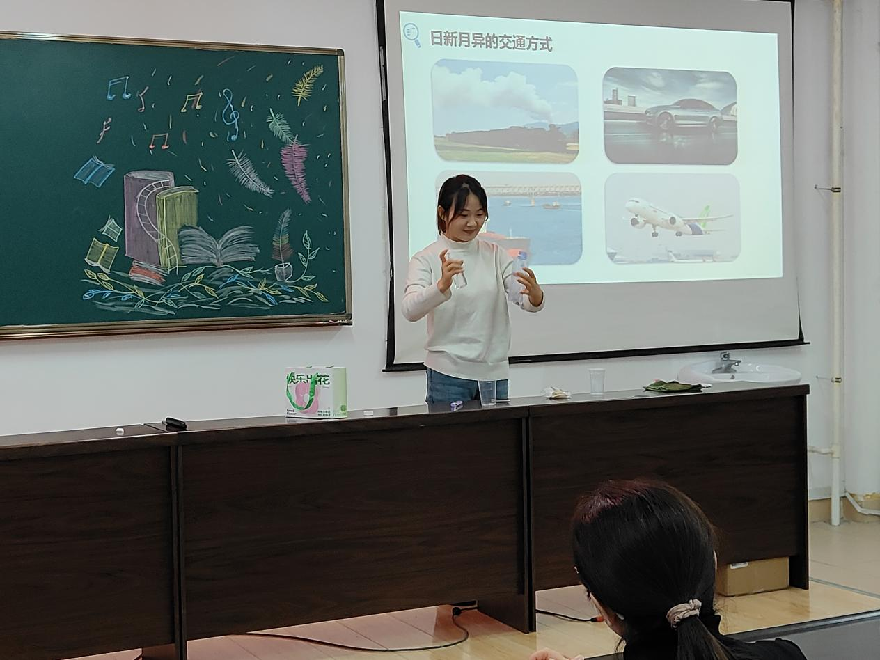 实习生代表金怀芳同学以《热机》这这节课为例进行无生课堂展示,她灵活的讲解、创新的实验演示、标准的教姿教态和恰到好处的提问技巧将中学物理课多种教学方法精彩纷呈的展现了出来,金怀芳同学的教学展示代表着2021级物理学专业员工学习成效的“冰山一角”。