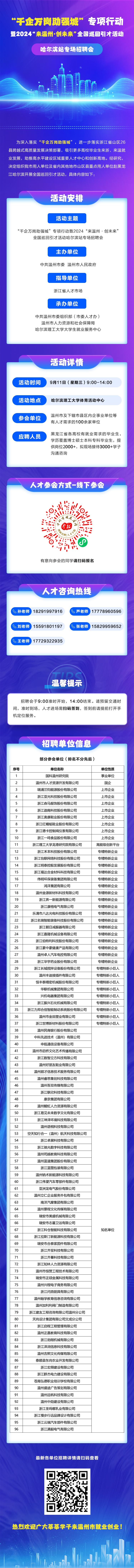 一职为你 | 2024“来温州·创未来”全国巡回引才活动——哈尔滨站专场招聘会