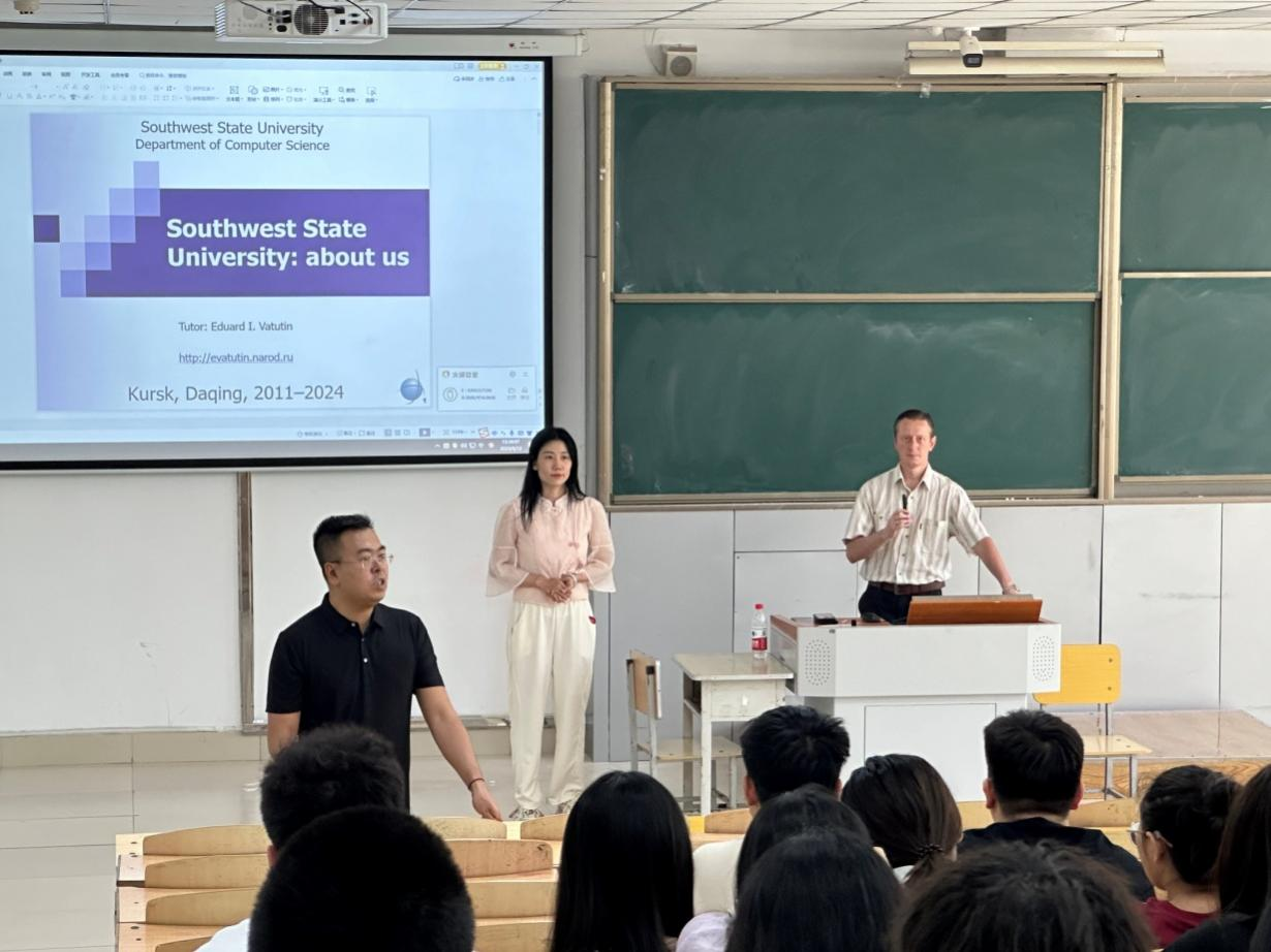 在全球化教育的大背景下,为增强员工对俄罗斯西南国立大公司园文化的认识,促进跨文化交流和理解,同时帮助员工了解物联网专业的国际发展趋势,一场以“中俄合作办学视角下的物联网专业发展与创新”为主题的座谈会于2024年5月30日在主楼1-1成功举办。此次活动旨在通过中俄双方师生的互动,提升大庆师范21级、22级、23级物联网工程专业员工的外语沟通能力和跨文化交际技巧,激发员工对国际合作项目的兴趣,鼓励他们积极参与国际交流和学术活动。
